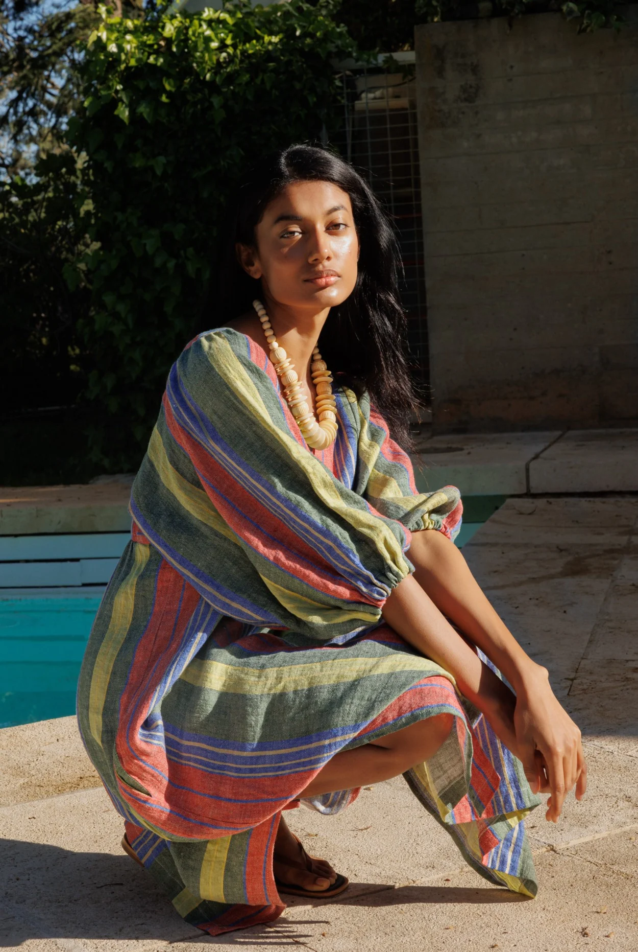 El vestido Hani está confeccionado en un tejido 100% lino, esta fibra se caracteriza por su alta transpirabilidad lo que hará que estés cómoda y fresca todo el verano. Es un vestido largo con corte en el pecho, escote cuadrado y manga abullonada. Cuenta con bolsillos y aberturas laterales. Uno de los must de la temporada, esta vez en un estampado de rayas multicolor. Se convertirá en tu vestido favorito del verano.